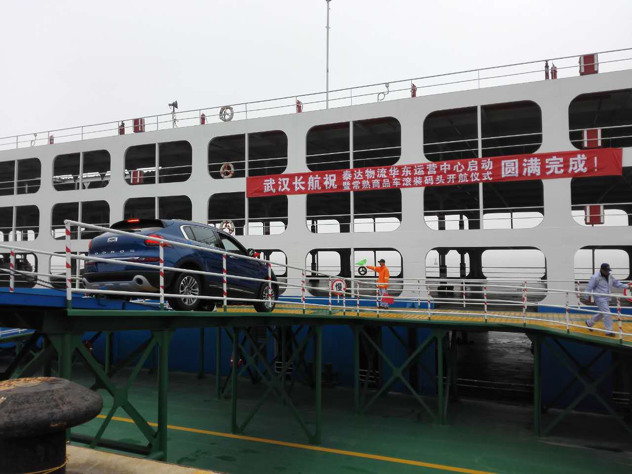 快讯:泰达物流华东运营中心启动暨常熟商品车滚装码头开航仪式商品车滚装作业现场