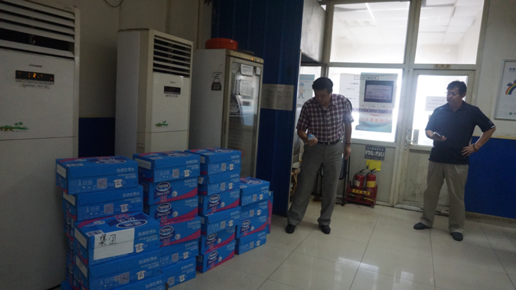 2017年7月12日,入伏的第一天,集团公司张舰总裁、李仰乾副总裁、唐志忠副总裁等集团领导,在丰田物流陈越常务副总陪同下,走进一线,为员工送去了清凉饮料,率先拉开了送清凉活动的序幕。为了不耽误员工生产工作,集团领导们早早来到员工食堂,摆好饮料,等待员工们休息时饮用。今夏的慰问饮料,从关爱、实用多方面考虑,特意给员工们准备了提前冷藏好的清凉饮品。 在员工休息时,张舰总裁向一线员工们详细了解防暑药品发放、食堂用餐卫生等情况,要求公司切实抓好防暑降温工作,劳动安全保障措施务必落实。公司陈越常务副总表示丰田物流一定做好相关措施,确保员工劳动安全和身体健康,保证公司正常生产和安全工作。