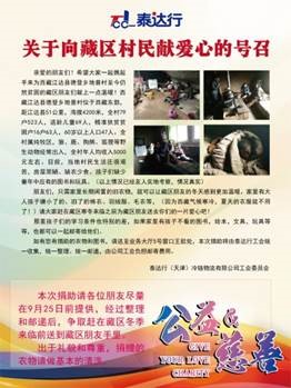 相信有了泰达行员工的点点爱心,今年的冬天藏区村民们将不那么寒冷。